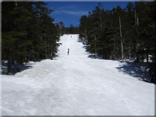 でも気持ちよい滑りはここまで(^^;。位ヶ原から先のコースはすっかり荒らされ、またざらめ雪と化していました。