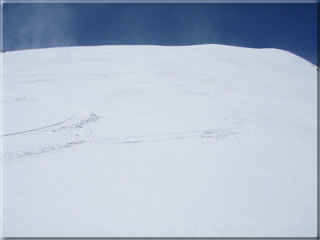 このあたりの雪ですが、堅くなったざらめ雪の上に新雪が5〜10cmという感じでした。