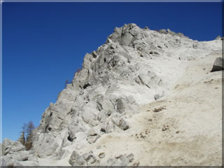 11時18分、山頂到着。それまでずーっと森の中を歩いてきたせいか、ここでいきなり目の前が開けて真っ白い砂原が広がり、そして目の前の大展望には思わず息をのみます(^^)。ここが雁ヶ原です。ちなみにここまで休憩無しで登ってきました。