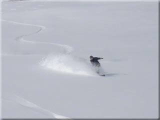 ちょうど目の前をボーダーが気持ち良くスプレーを上げて滑り降りていきましたので、ぱちり。