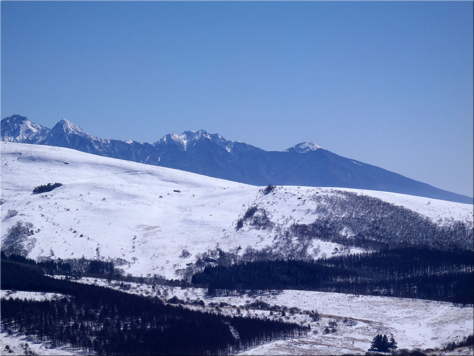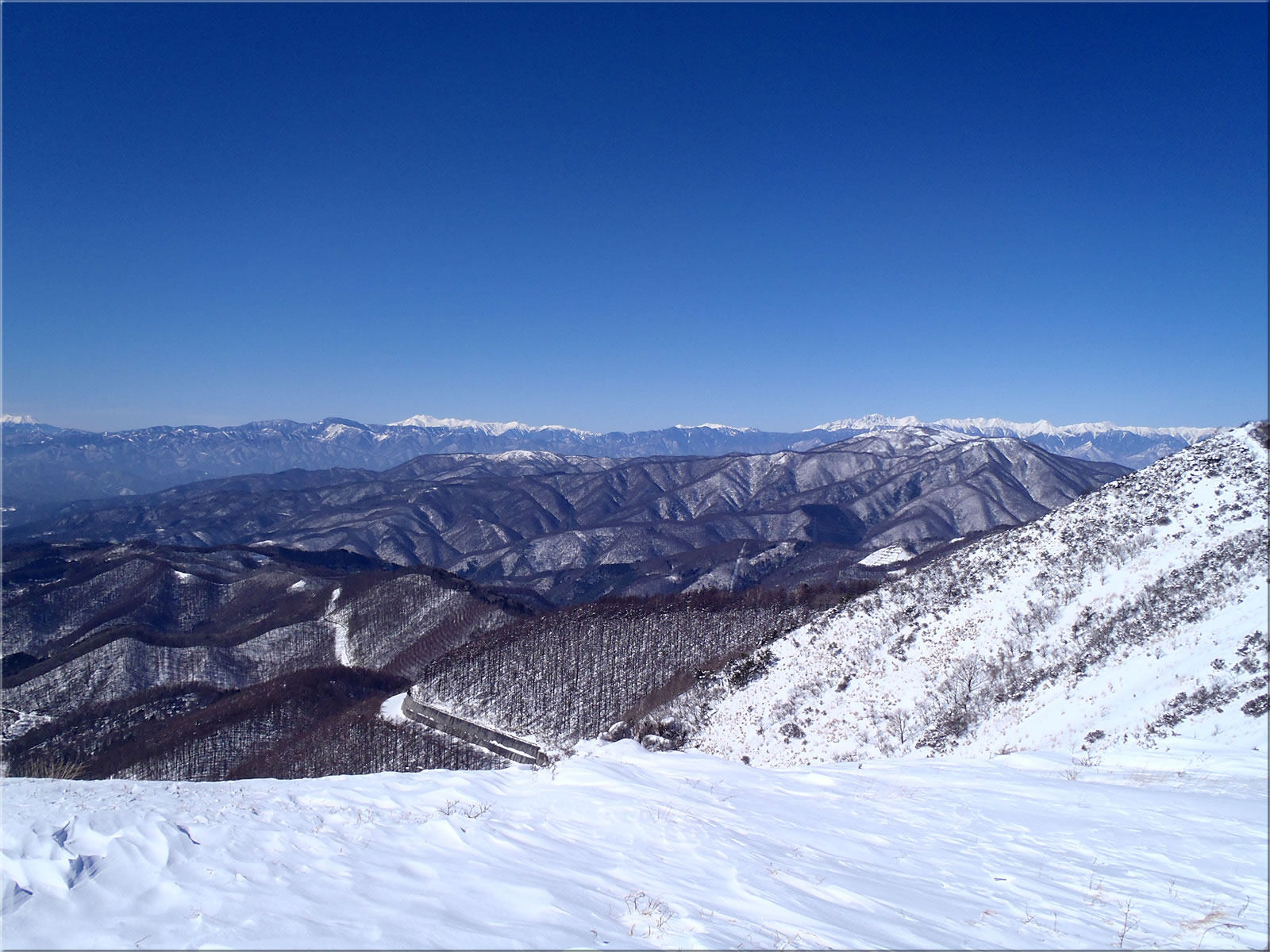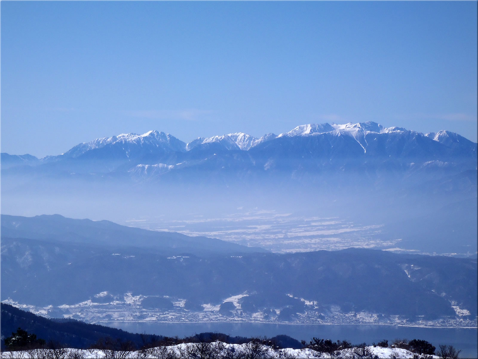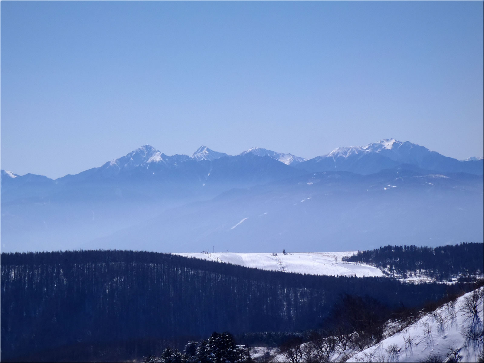 ラッセルに思いのほか時間がかかってしまいましたので、今日はこのピークまでとします。ではここからの展望を八ヶ岳方面から右回りでご紹介。
