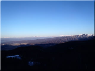 真っ白な山々をズーム。上越の山だと思いますが、こちらの山はよく知りません(^^;。