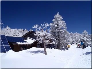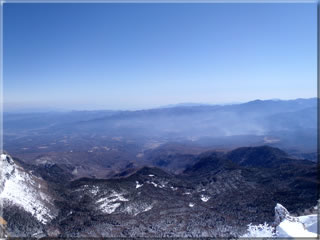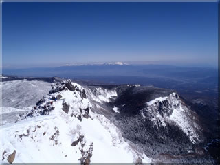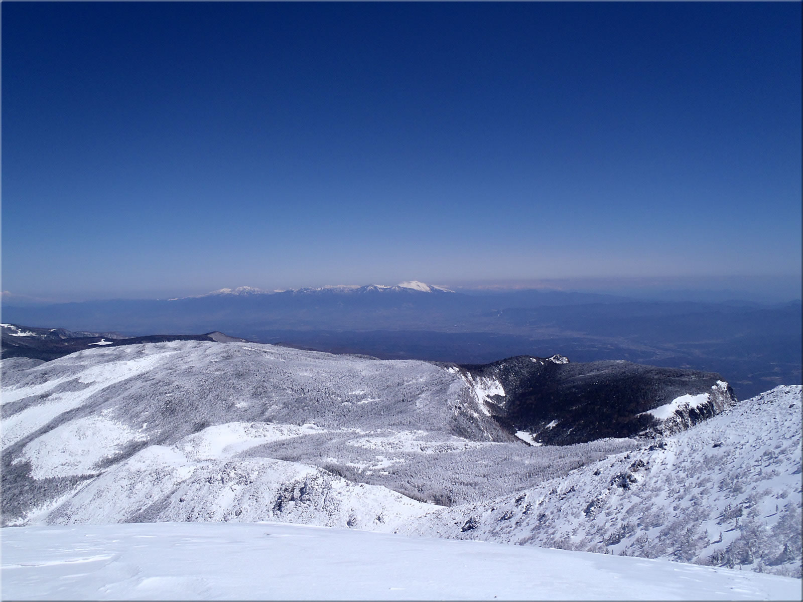 今日は雲一つ無い最高の天気となり、見渡す限りの山々が皆見えていました(^^)。ただ冷たい強めの風が吹き付けていて、足下はかりかりのアイスバーンということで、のんびりと景色を眺めている余裕はそれほどありませんでした。