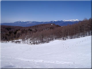 快晴となったこの日、あまりの快晴さにたまらず(^^;、午後から最後の入笠山のバックカントリーに出かけてきました。ただ出かけたのが遅く、山頂に着く頃には薄雲が広がってしまったのが残念でしたが、でも昨日の大雨でリセットされたお花畑の大斜面を気持ちよく滑ることが出来ました。なお入笠湿原の斜面の方は雪解けも進み、もう賞味期限切れということで滑りませんでした。