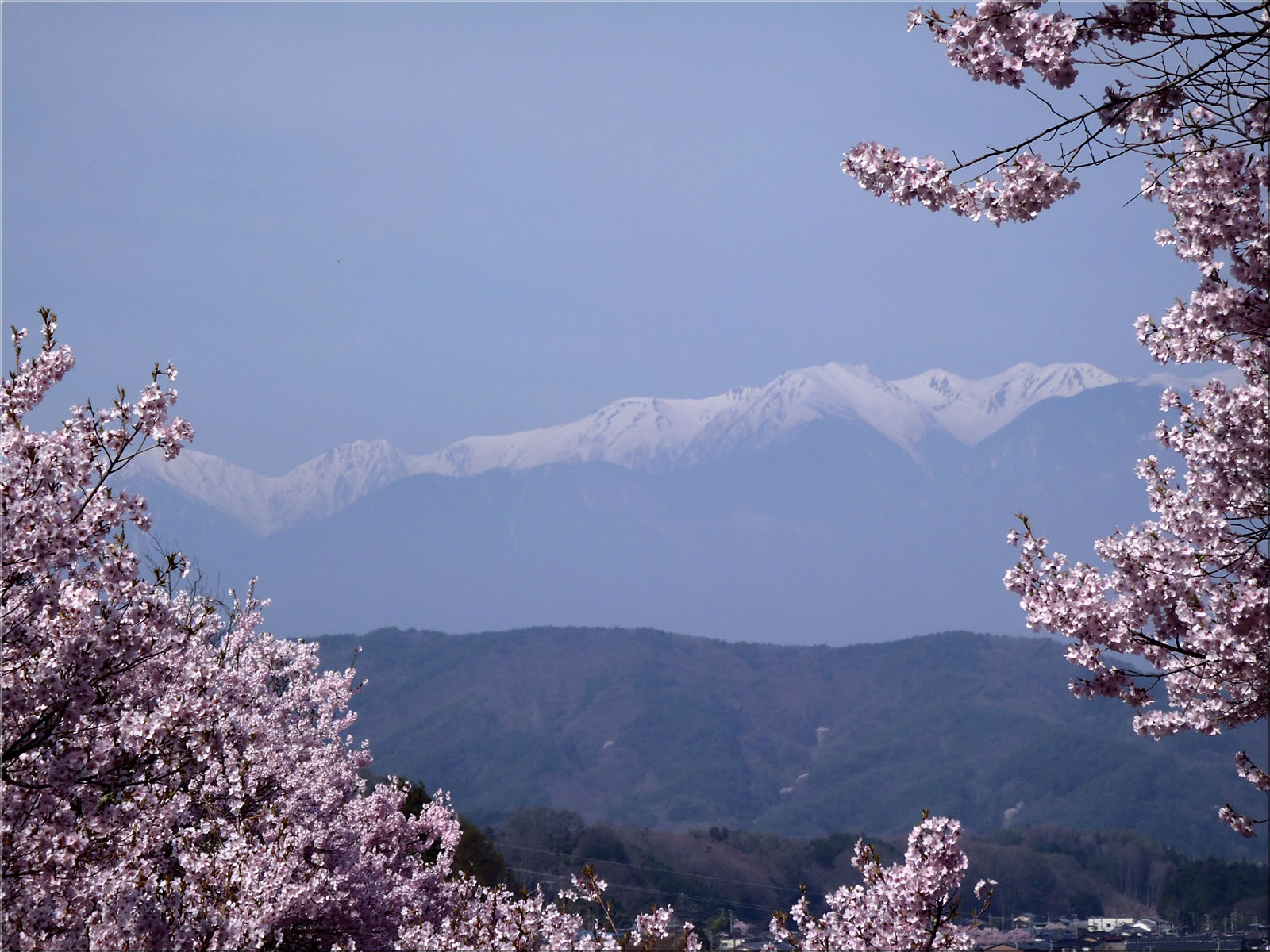 桜の木が多く、周囲の見晴らしの良い場所はそれほど無いのですが、ところどころで西側の中央アルプスを見ることが出来ました。