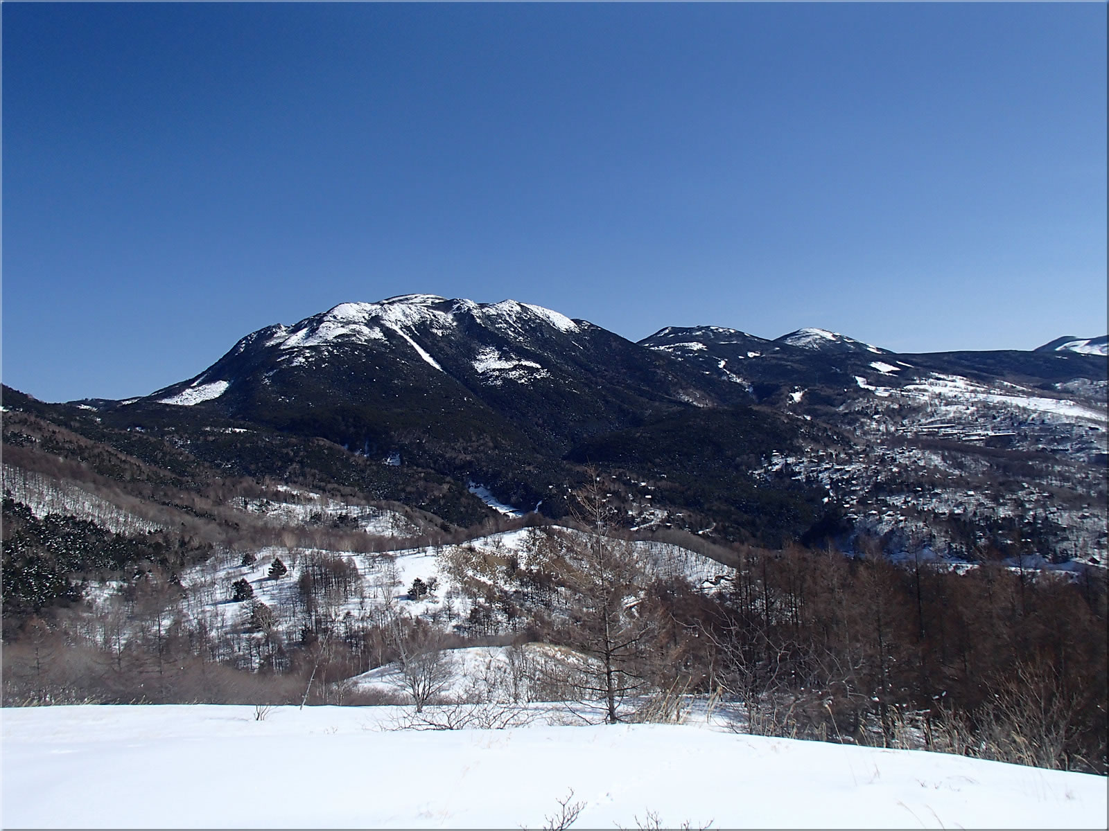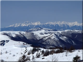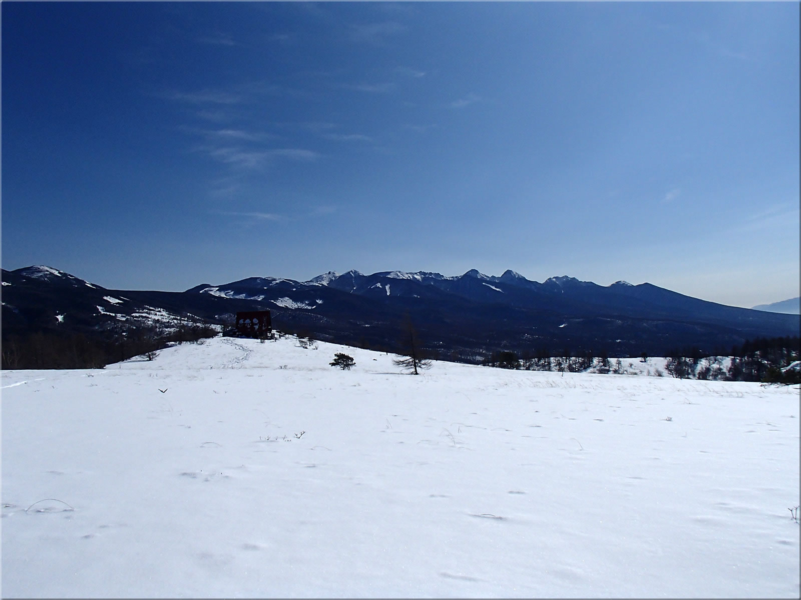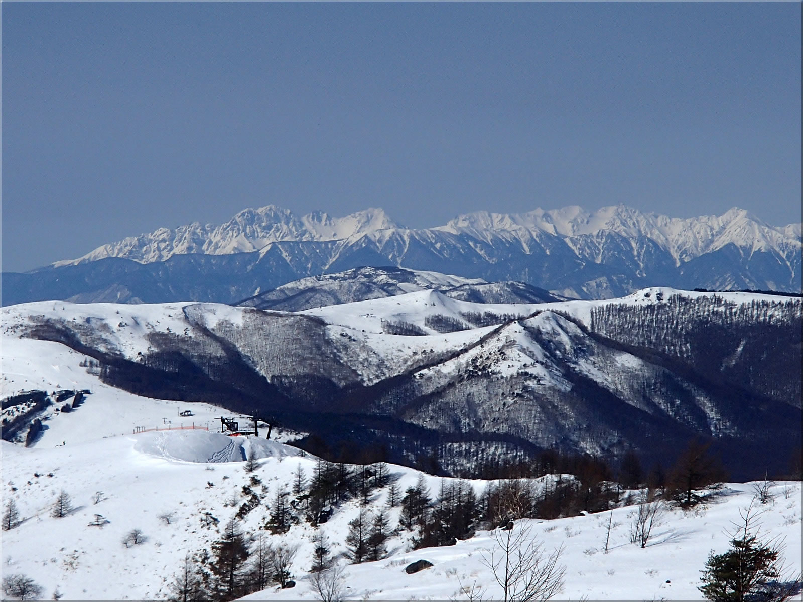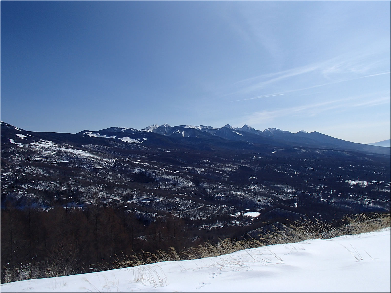今週は平日に快晴が続いていてなかなか仕事が手に付かないのですが(^^;、この日も午後から崩れる予報とはいえ朝から素晴らしい快晴となり、見渡す限りの山が皆きれいに見えています。悪いことに明日は雨の予報で山の雪も状態が悪化しそうということで、その前に是非と少し仕事をお休みして近くの八子ヶ峰までバックカントリー(テレマークスキー)に出かけてみました。