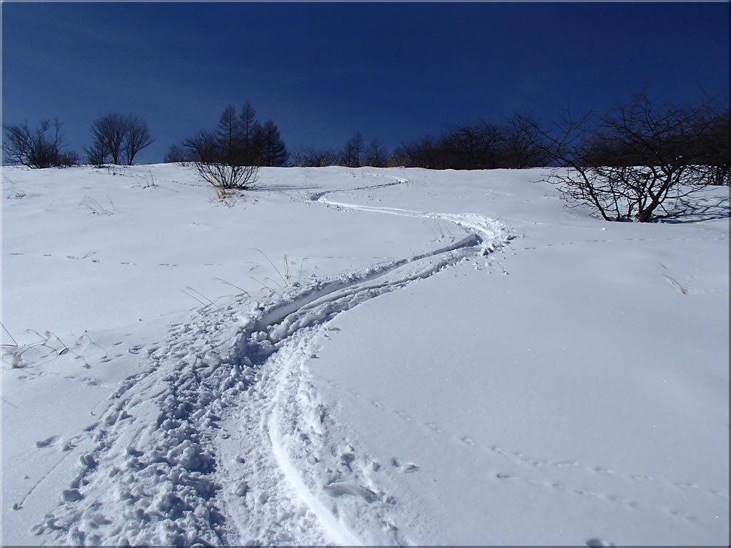 あれっ、スキーのトレースもあります。今日のものでは無さそうですが。