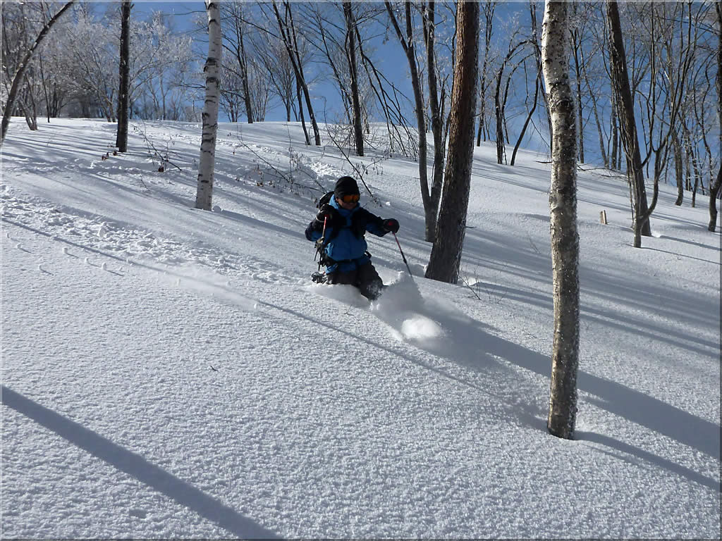 自分の滑り。舞い上がるさらさらパウダーが気持ちいいです(^^)。