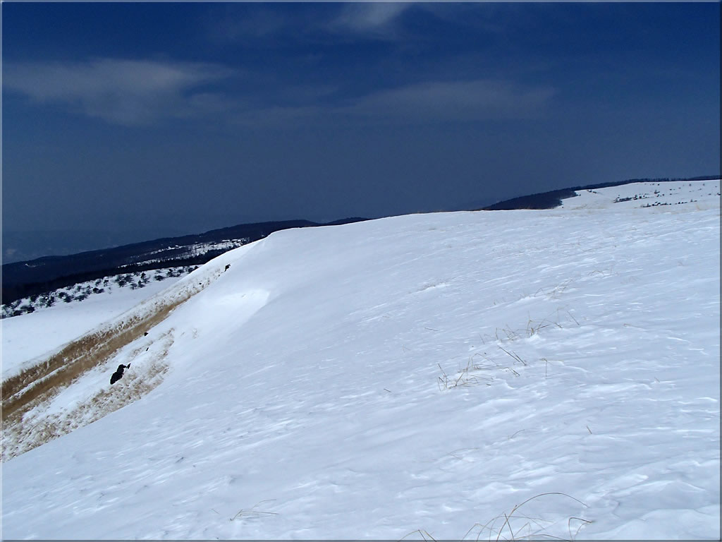 車山山頂から見た時に東側に良さそうな斜面が見えていたのを思い出し、少し東側の斜面に立ち寄ってみます。風向きによってはこちら側の斜面に新雪が吹きだまりそうです。今回は堅めの雪になってしまっていました。