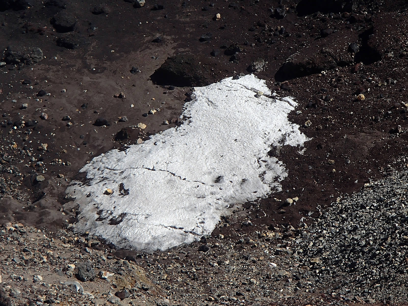 剣ヶ峰の火口側の斜面にはまだ雪が残っています。
