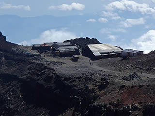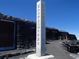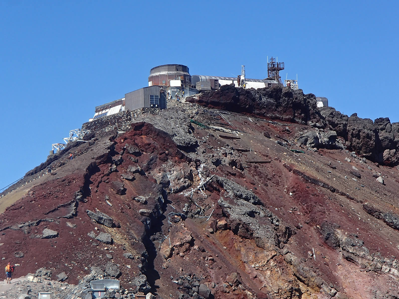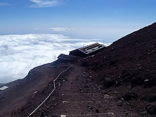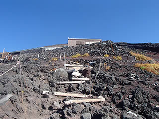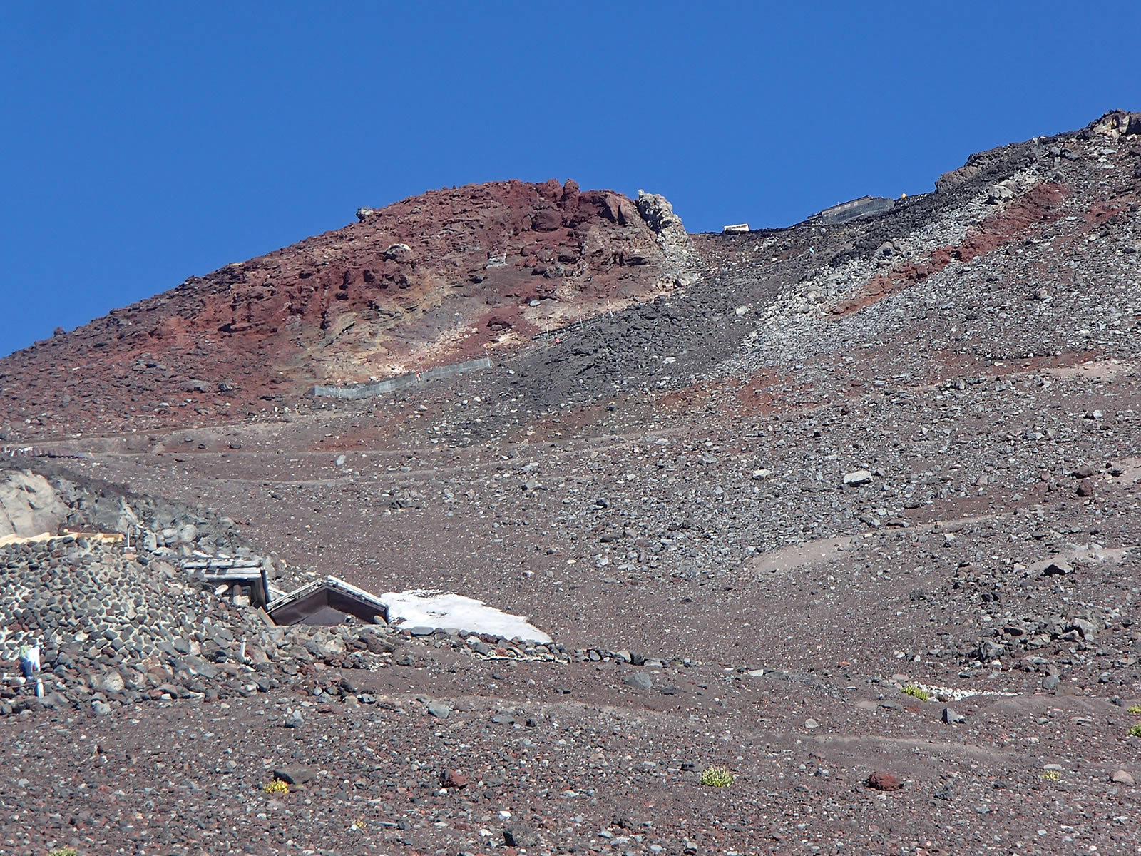 先ほど通過した富士宮口山頂の山小屋をズーム。
