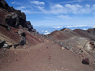 13時30分、宝永山山頂に到着。それにしても宝永山山頂は、下っていって山頂というのも不思議な感じです。