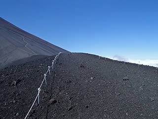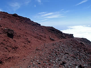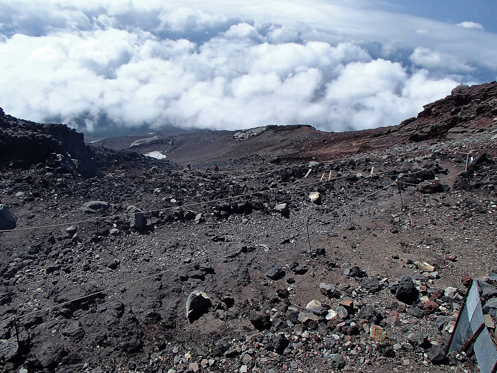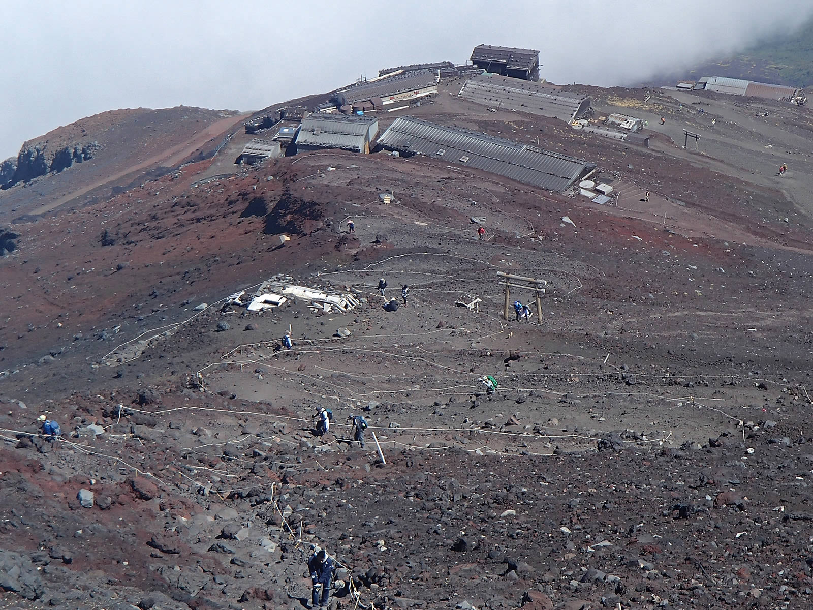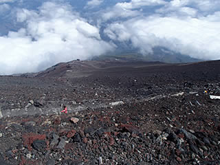 御殿場口下山口が近づきました。その向こうは富士宮口山頂です。ほぼ1周出来ました。