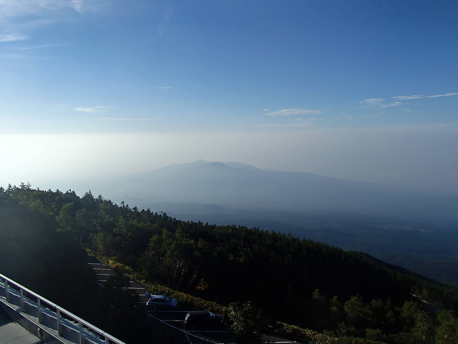 続いて南東側。南側には一面の厚い雲海が広がっています。でもその向こうに伊豆半島や相模湾もうっすらと見えています。