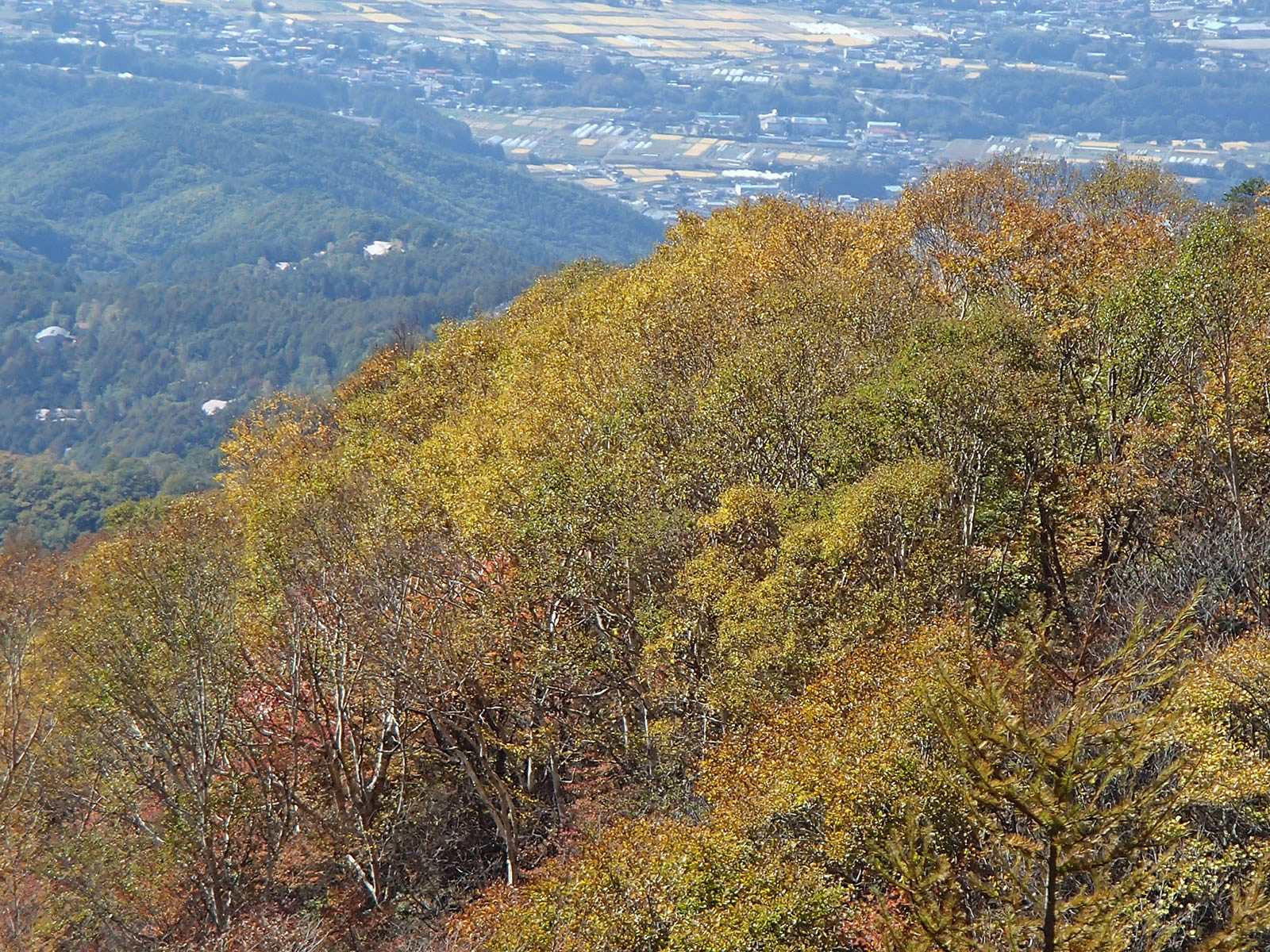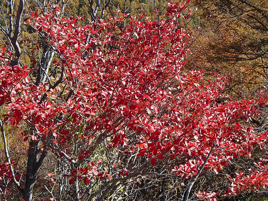 斜面の紅葉をズーム。上の方は良い感じに色づいていますね(^^)。