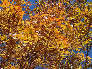 少し下るともみじの紅葉がありました。黄色から赤になりかけというところでしょうか。でもそんな赤色もきれいです。
