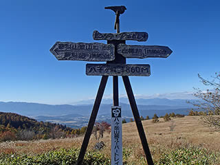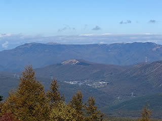 北アルプス、頸城山塊は残念ながら雲がかかって見えません。美ヶ原は見えています。