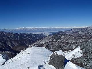 今までがあまりに雪が無かったため、まだ決して雪が多いとは言えない状況で、BCもかろうじてぎりぎりという感じでしたが、でもこの日は久しぶりのスーパー快晴となり、大展望を楽しみながら稜線を歩くことができ、その点では大満足の山行きとなりました。