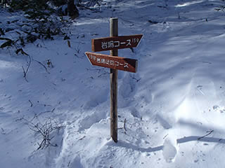 分岐。積雪が多い時はこの標識がほぼ埋もれます。