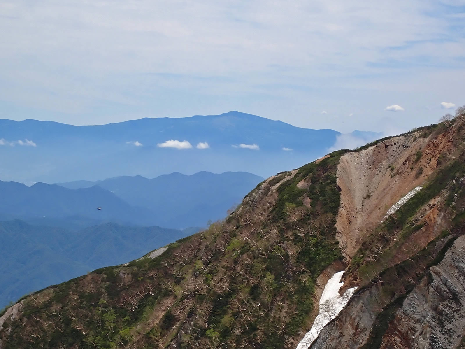 大雪渓は思ったほど小石が多くなく、それなりに滑ることが出来ました。小雪渓は雪がつながっていませんので、何カ所か歩く必要があります。