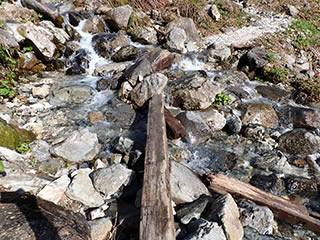 ここから少し行ったところの沢も、もう雪が無いので橋が架けられていました。