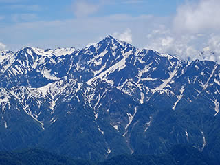 北アルプス南部。槍の右側に見えている山はもしかして乗鞍岳か。