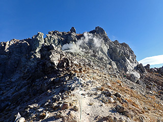 北峰。今日は少し風があって蒸気がほぼ横に流れています。