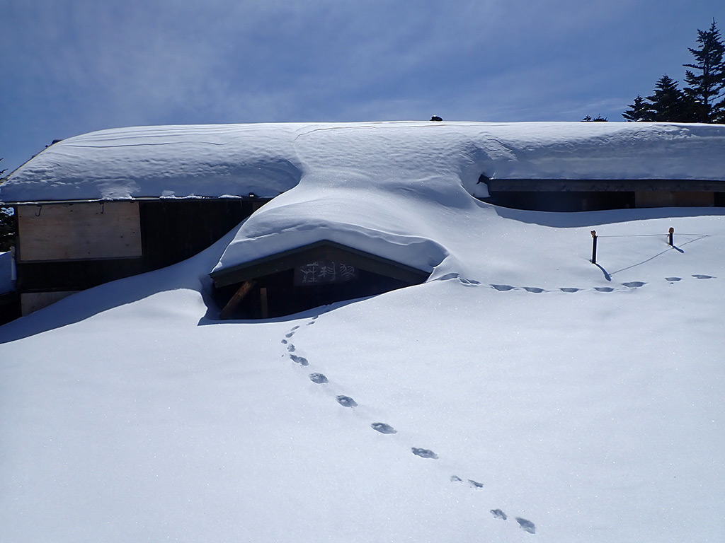 10時30分、将軍平に到着。小屋はまだかなり雪に埋もれています。