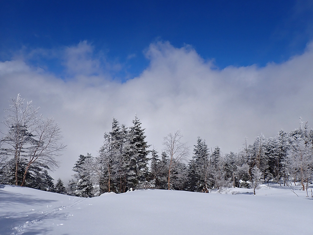 今日は北八方面は雲多くほぼ真っ白でしたが、それでも一時的でしたが青空が広がり、きれいな霧氷が見れたのでよかったです。