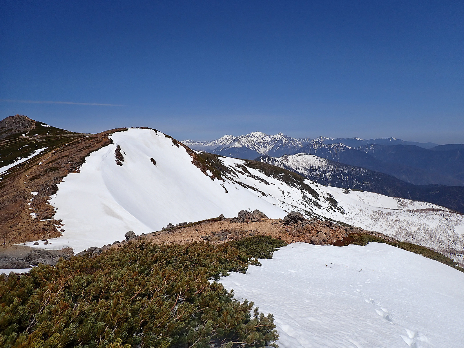 振り返って中央アルプス。多くは少しかすみ気味でした。