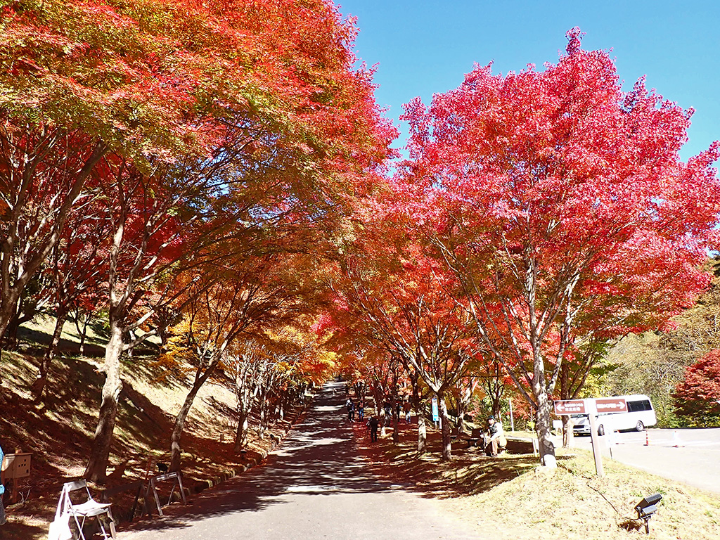 竹ノ尾広場まで行ってみます。斜面に沢山のもみじ。
