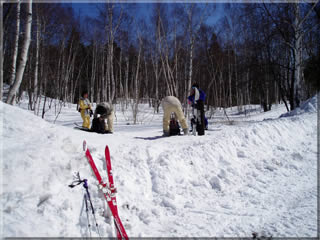 ところで今回のメンバーの道具が皆まちまちなのには笑ってしまいました。私はテレマーク+スノーシューでしたが、他のメンバーはテレマーク+シール、スノーボード+スノーシュー、スノートレック+シールでした。