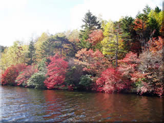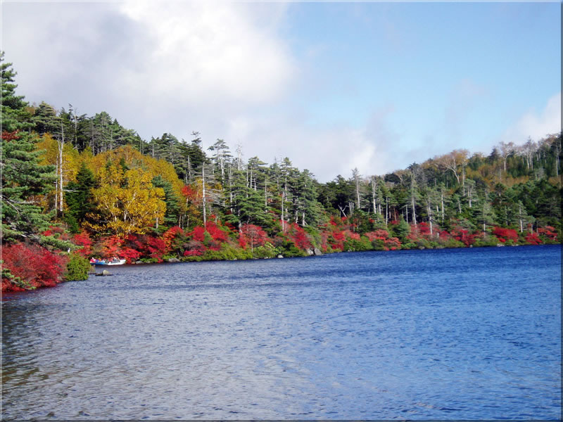 そしてまもなく白駒池に到着。紅葉ですが、若干赤の鮮やかさが落ちてきたかなという気はしますが、それでもまだまだ見事な紅葉です(^^)。