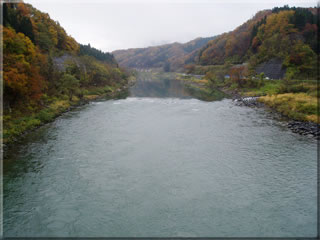 西大滝ダム手前の最後の橋、市川橋の上から下流側を見たもの。