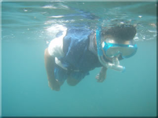 午前中は風が無いので、私も昨日に続いてシュノーケルをしてみます。