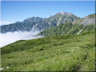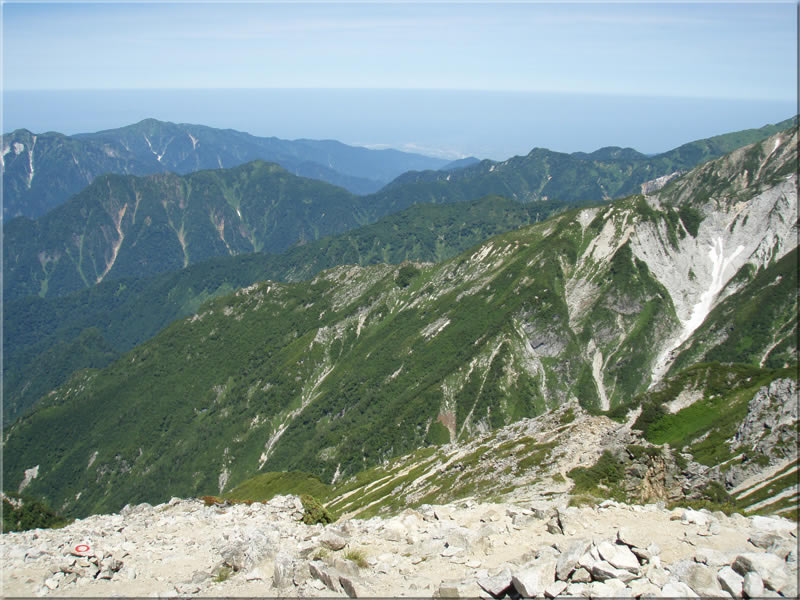次の写真は白馬三山方面。キレットの険しい道が続いています。