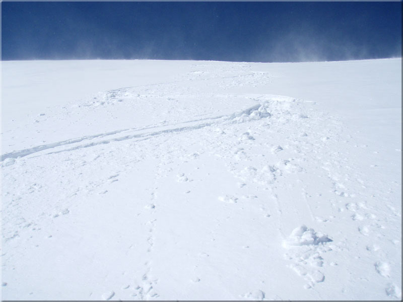 ただ斜面の上は強風でたたかれてすっかり堅くなっています。