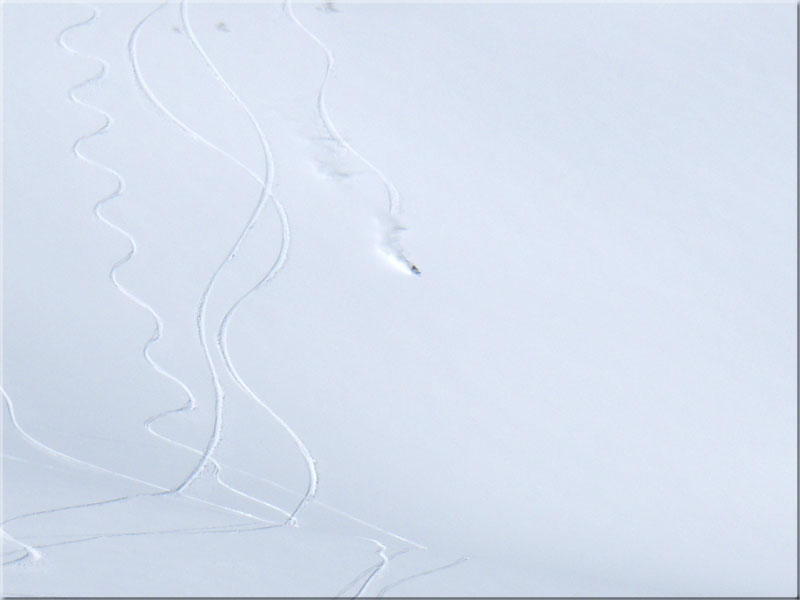 私が先ほど滑った跡は、後から後から滑ってくる人のシュプールでぐちゃぐちゃになってきています(^^;。