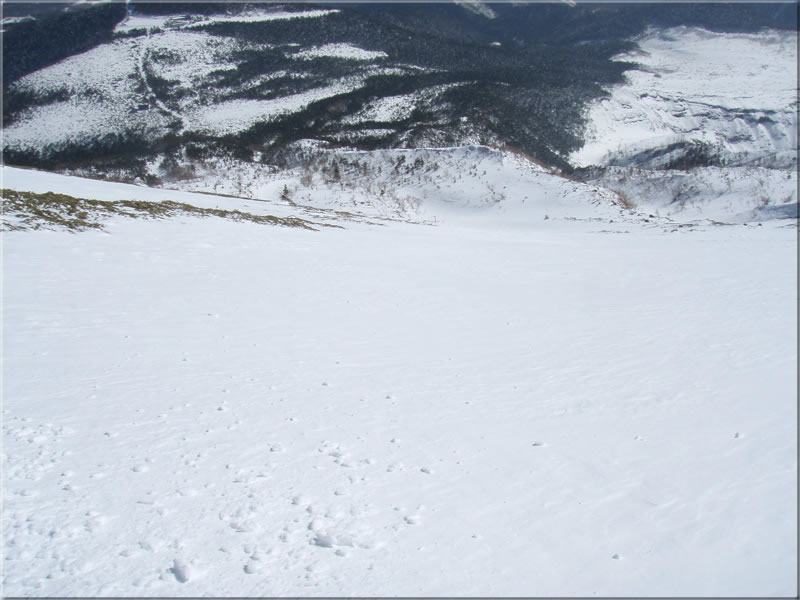 ここで窪地は終わりです。この先は広い斜面が下までずーっと真っ直ぐに続いています。