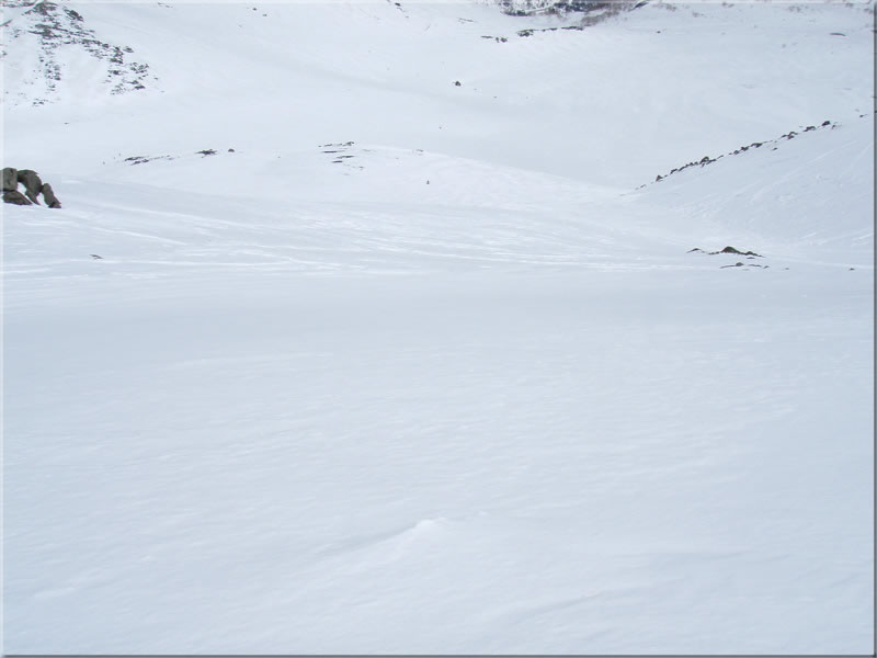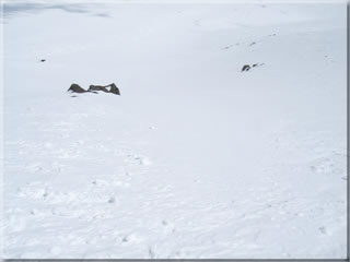 次の写真では、この辺りの吹きだまりの雪の多さがよく分かります。