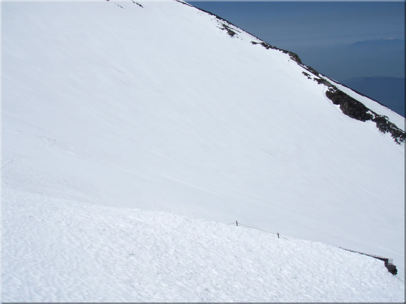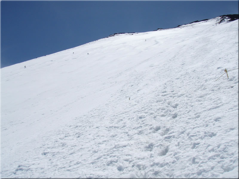 次の4枚は右側の吉田大沢の様子。なにやら8合目あたりから7合目まで大きな雪崩の跡があります。どこから落ちてきた雪なんだろう?。
