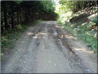 修理も無事終わり、再び下り始めますが、間もなく林道がY字路状に分岐している場所に出ます。メイン道路はそのまま左に下っていくルートの様ですので、そちらに進んでいきます。