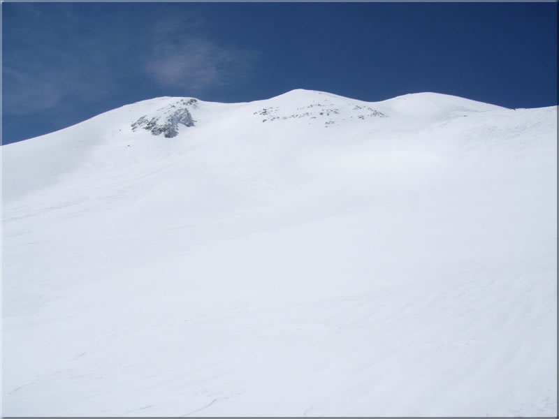 この斜面も表面はパックパウダーの状態でクラストバーンはほとんど無く、直登で快調に登っていくことが出来ました。