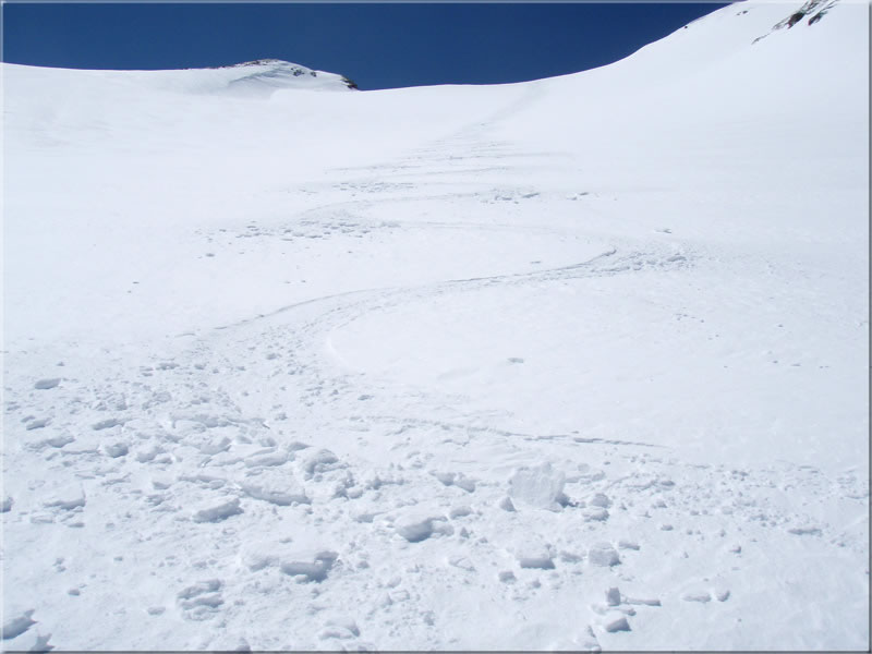 斜度がゆるむと再び雪は再び少し堅めになりました。