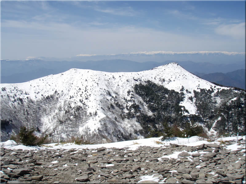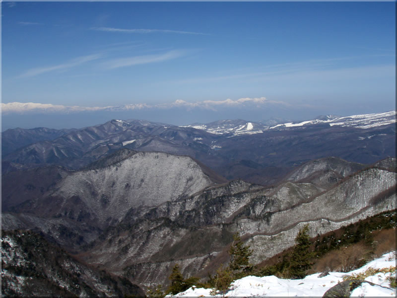 若干薄雲はありますが、でも今日は遠くの山まで見えています(^^)。過去に湯の丸山に来た中で今回が一番展望が良いかもしれません。