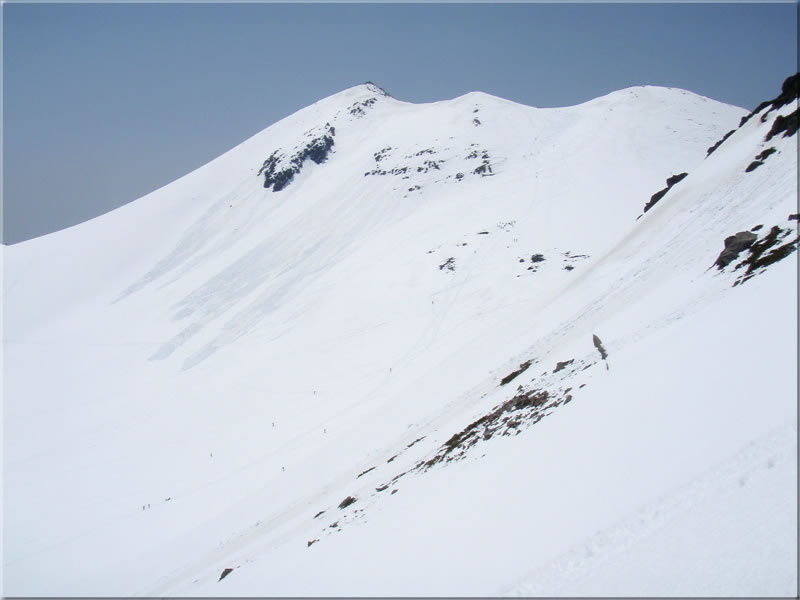 乗鞍岳の斜面を何人か滑り始めました。