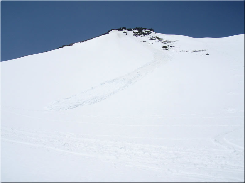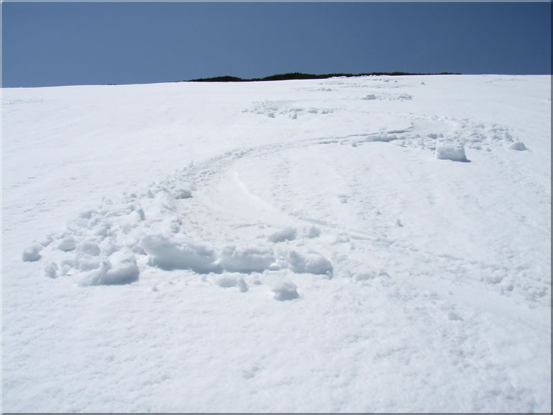 次の写真は摩利支天岳の雪崩。今回降った新雪の層だけが滑った感じです。