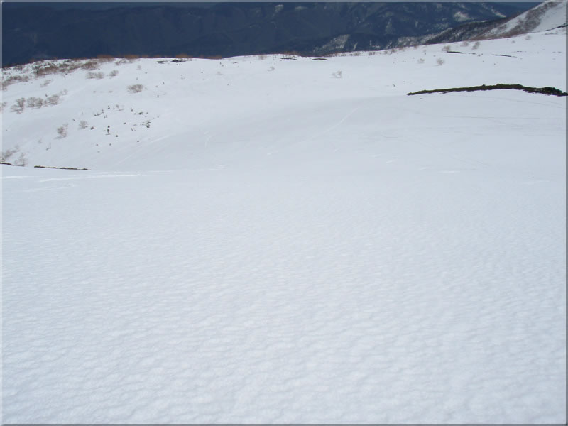 かすかにシュプールが見えるのは、おそらく昨日のものでしょうか。