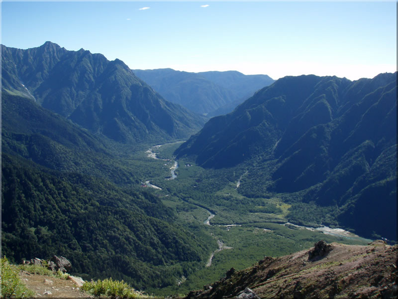 上高地からの登山道が合流する地点からは槍穂高、上高地がきれいに見えていました。