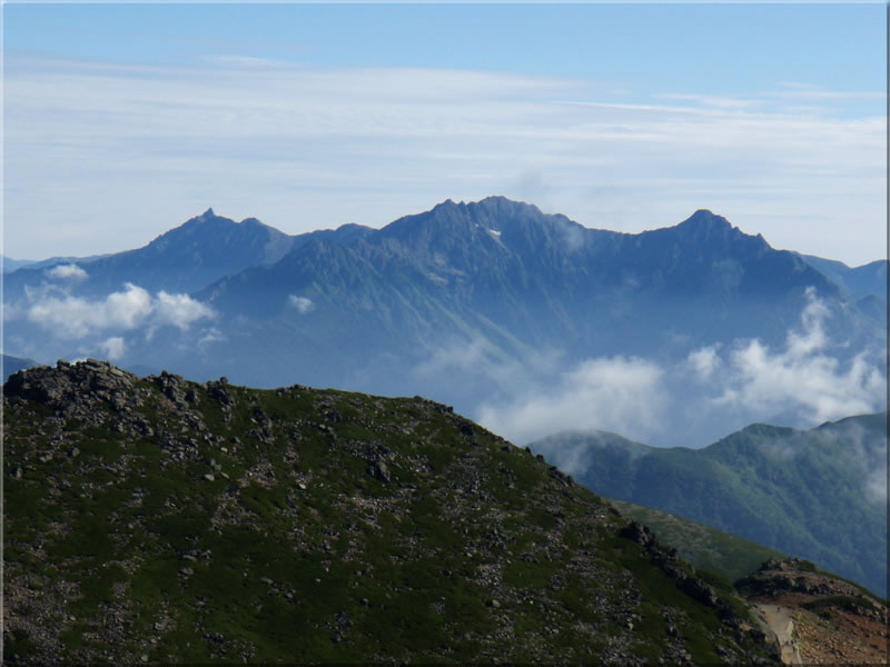 しばらく登ると北アルプスの山々が見えてきます。槍穂高もくっきりと見えています(^^)。